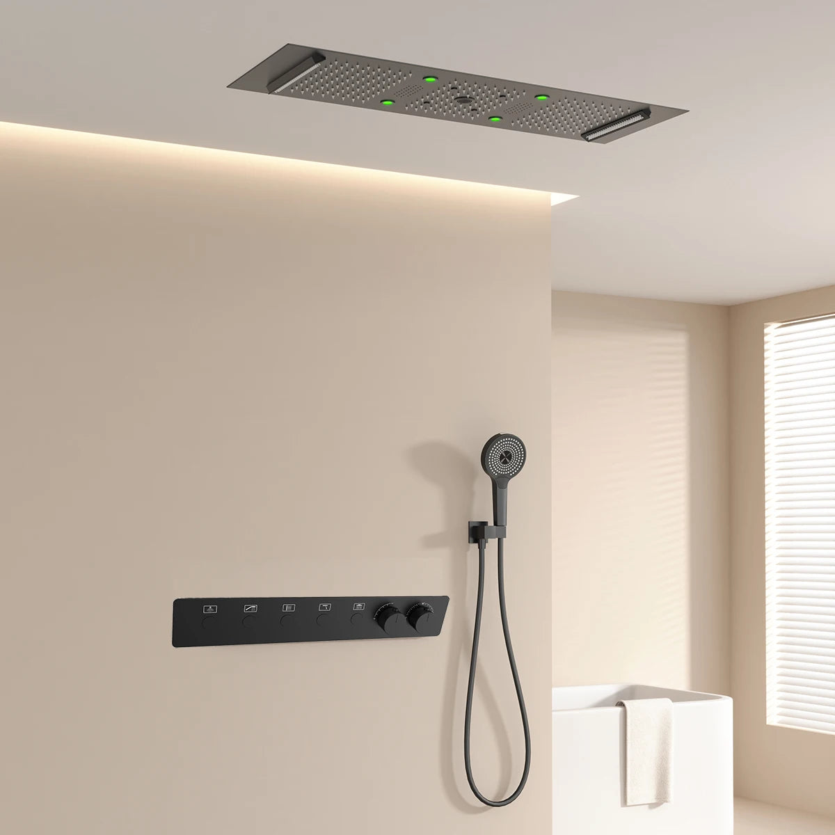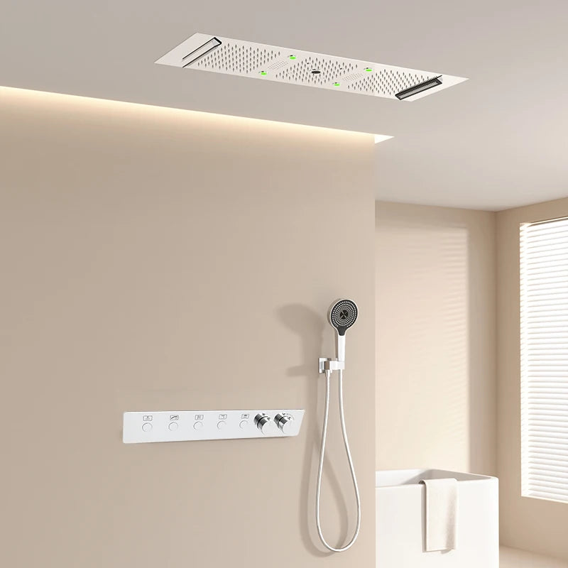 300*900mm Bathroom Ceiling LED Thermostatic Smart Shower Faucet Set with Rainwater Waterfall Led Shower Head Set