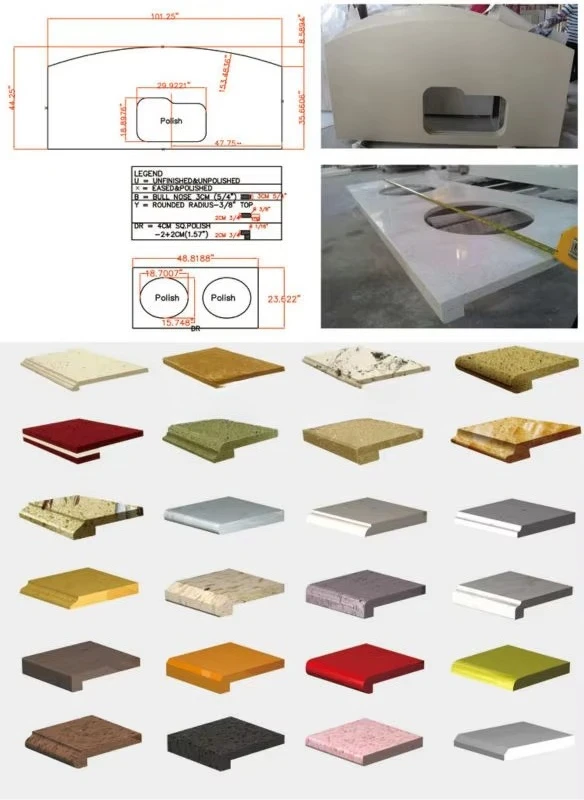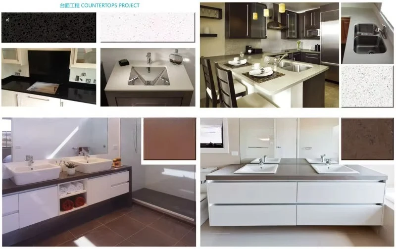Countertops are the processing of stone product after the slab production. Zhongguanshi artificial stone can be processed into different size and shape countertop with edges and hole. Countertops combines beauty, durability and easy maintenance with affordability.