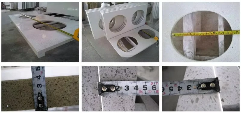 | 2. Professional fabrication: No matter what special shape or normal shape the countertop is we can go on the processing of the hole, drilling sink, edge polishing and edge lamination professionally. | |