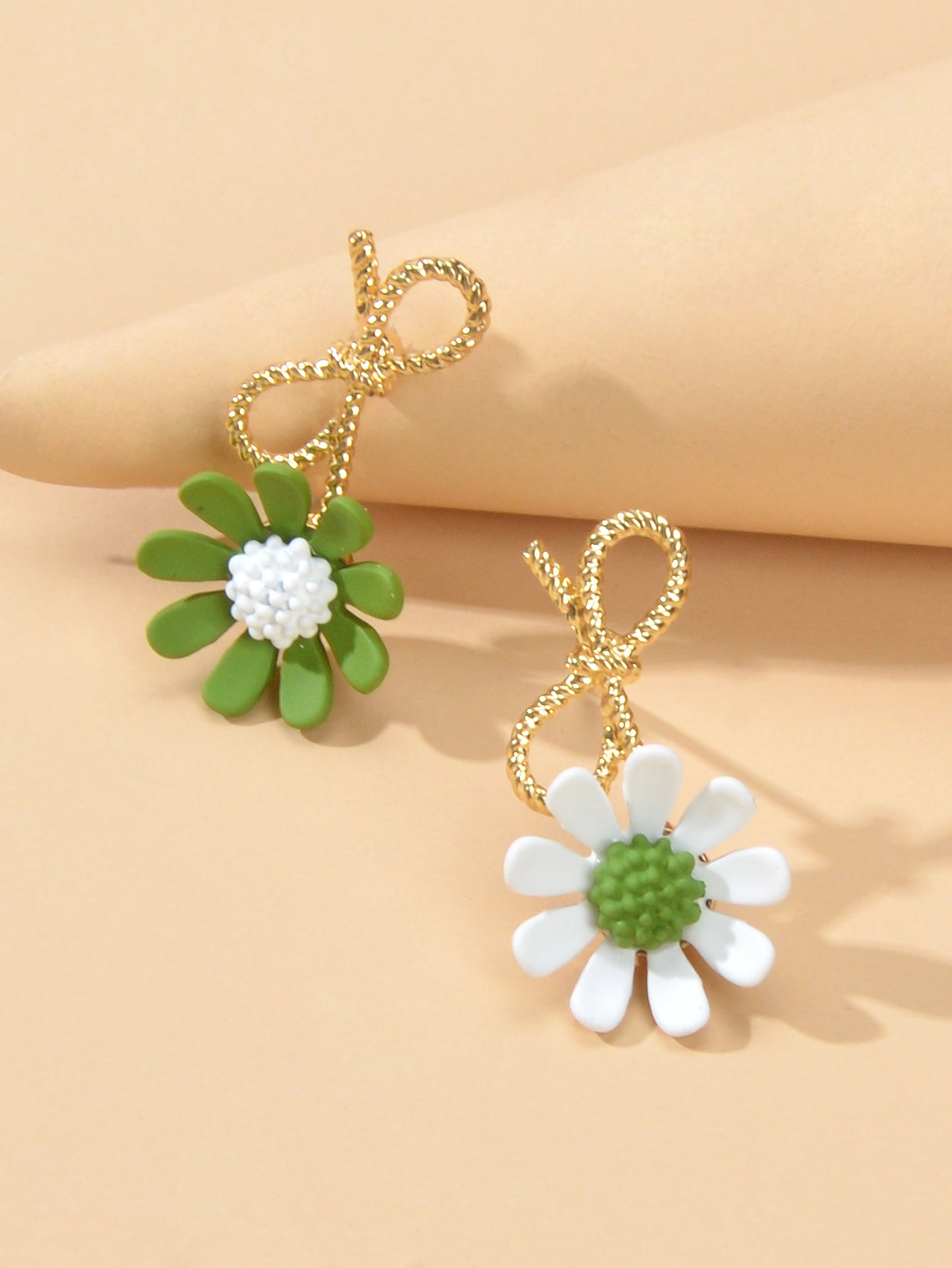 Dainty Gift Women Bow White Green Flower Asymmetric Hypoallergenic Stud Earrings