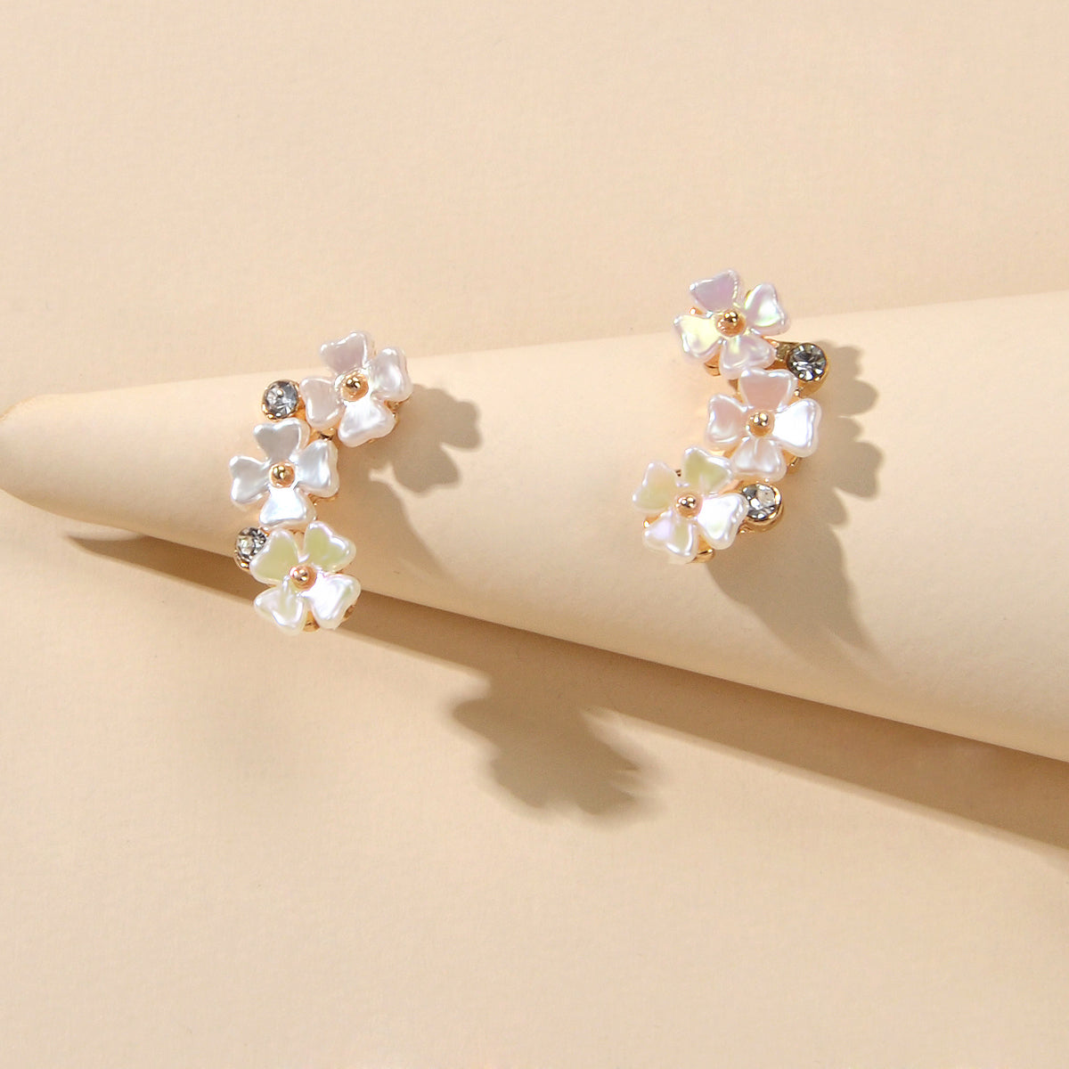 Dainty Gifts Women Girls Lightweight Rhinestone White Flower Cute Stud Earrings
