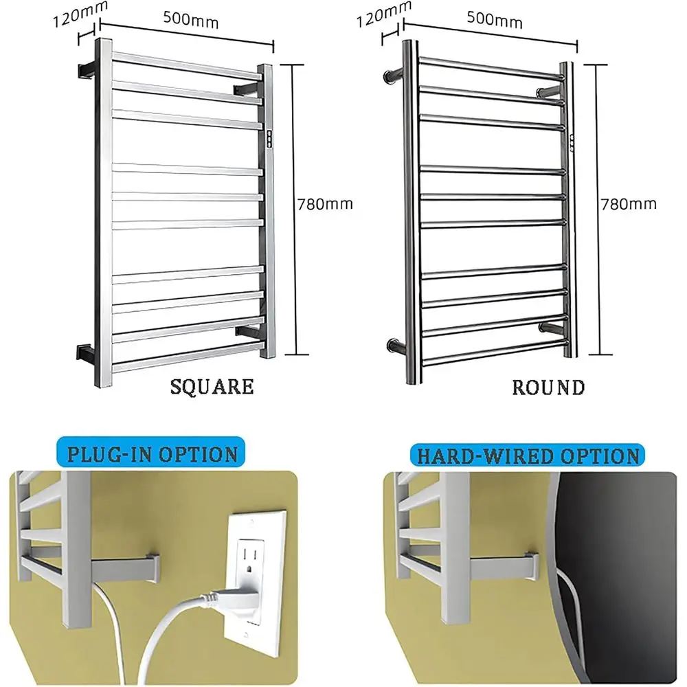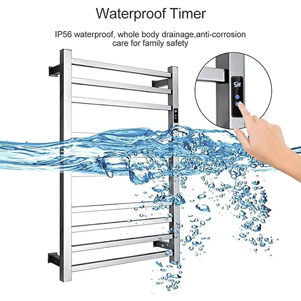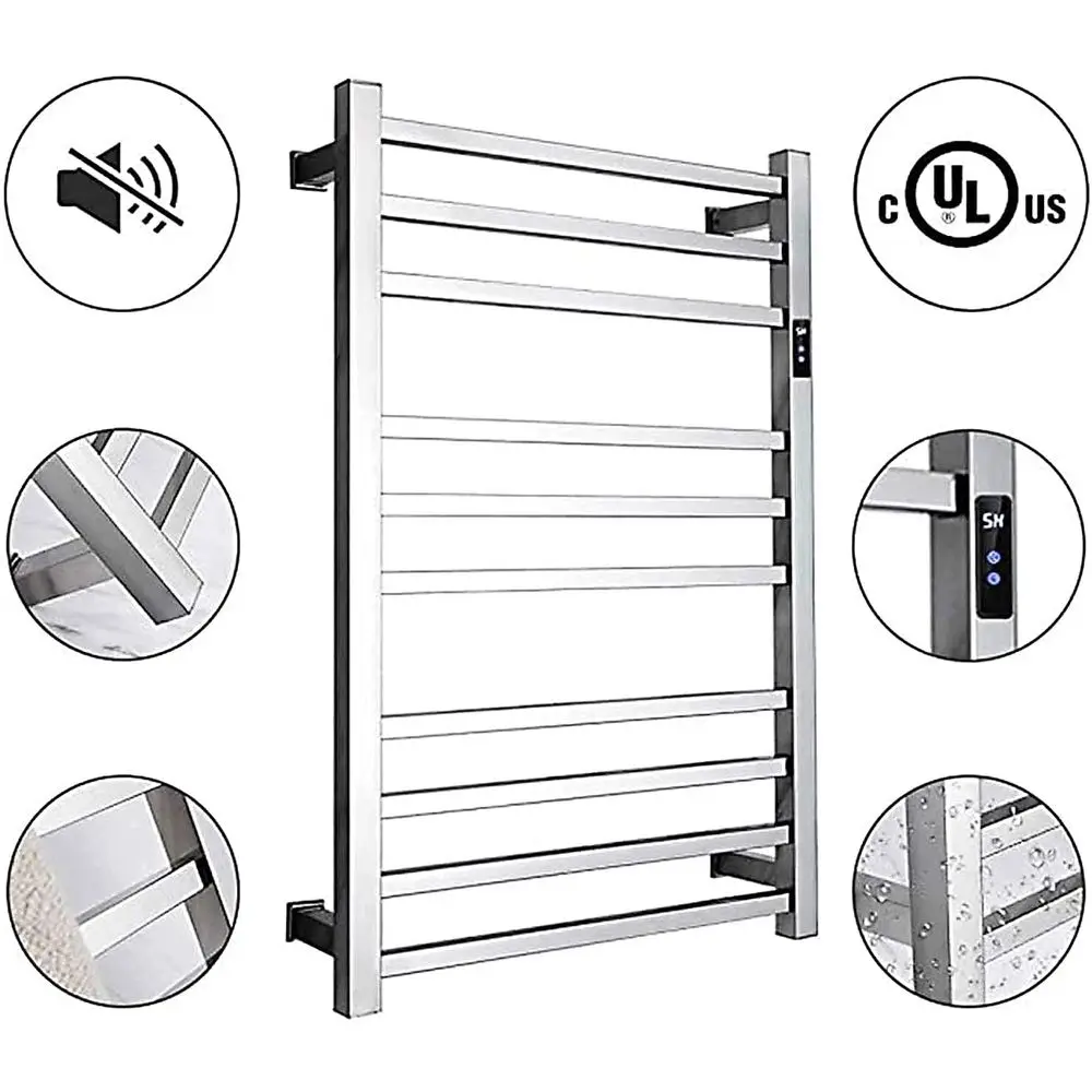 Electric Towel Warmer,with Timer Wall Mounted 10 Bars Smart Electric Towel Rack Stainless Steel Heated Towel Rails 88W Low Power