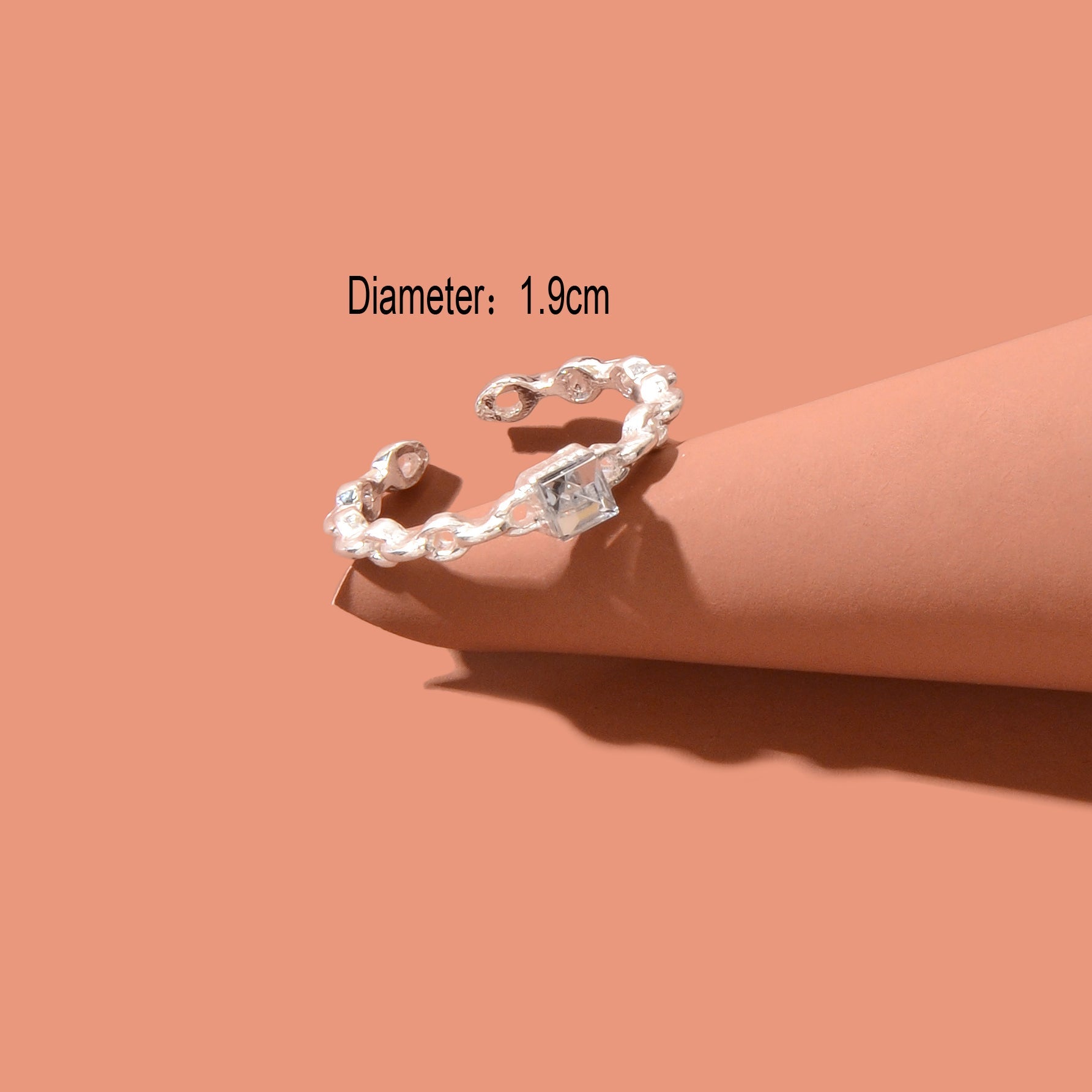 Exquisite Rhinestone Decor Silvery Chain Design Open Cuff Ring Women Party Prom Jewelry