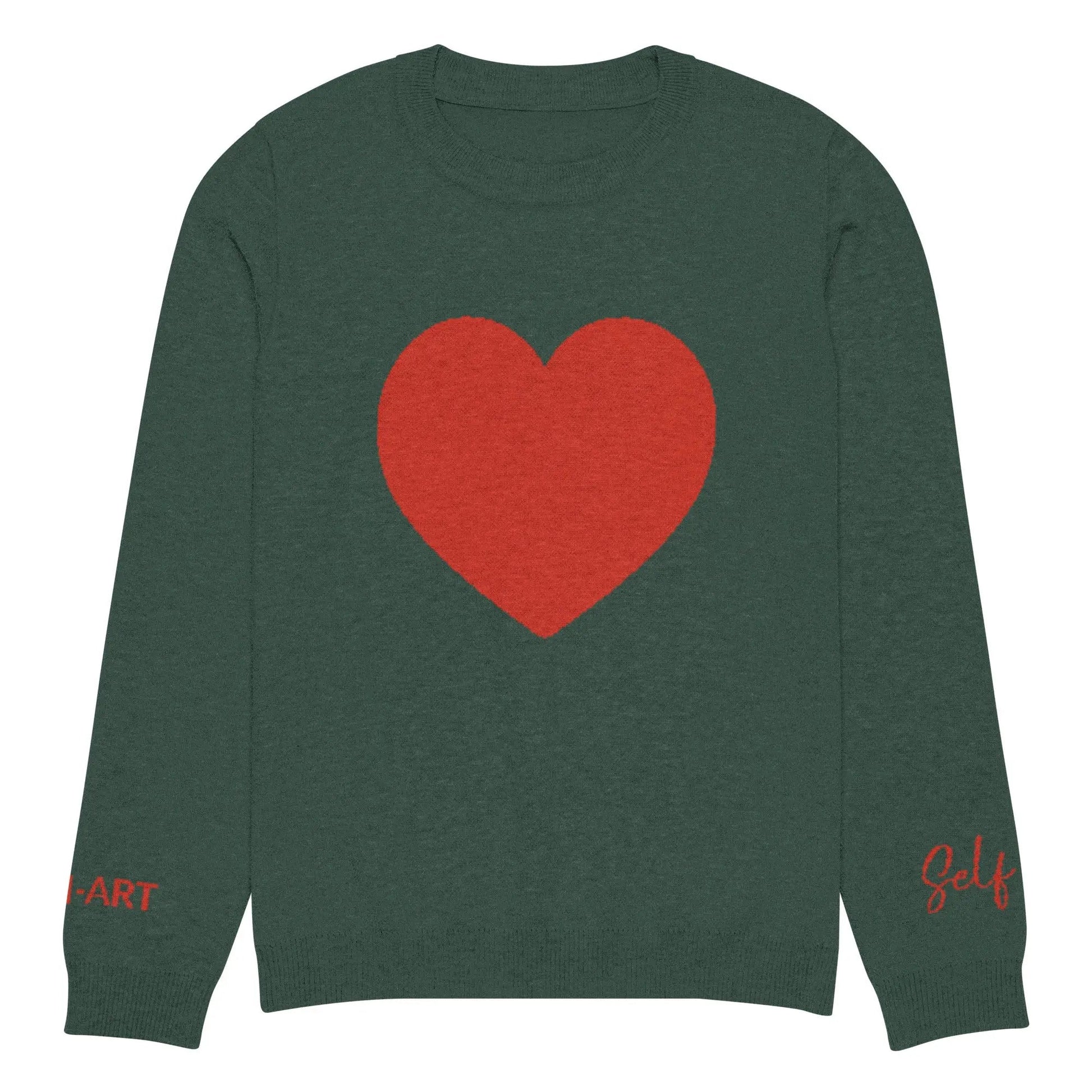 Heart - Knitted crew neck sweater PINE