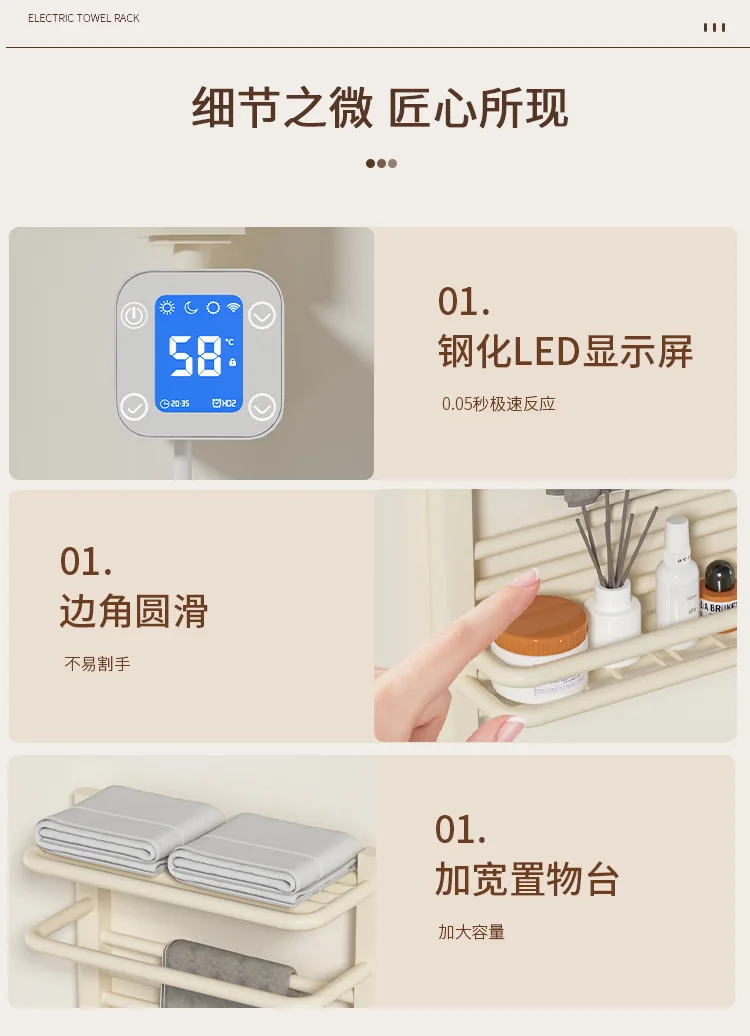 Smart Dehumidifying Heating Electric Towel Rack Multi-Layer Storage Home Hotel Bathroom Heater Warmer