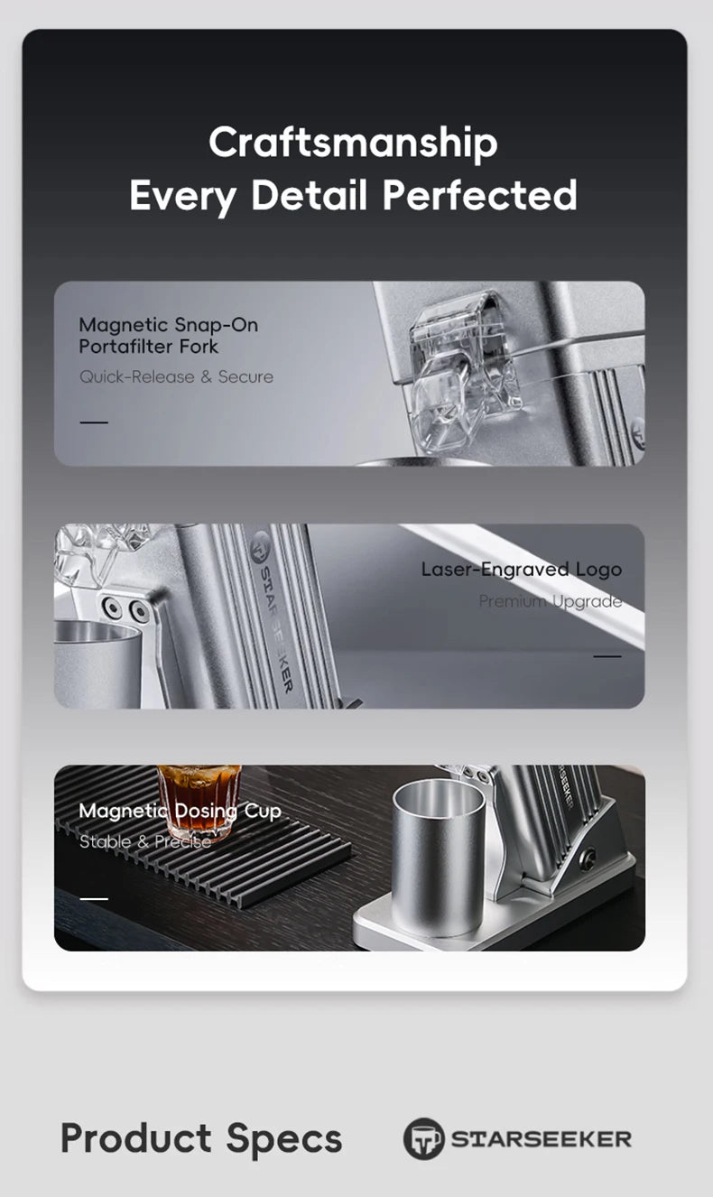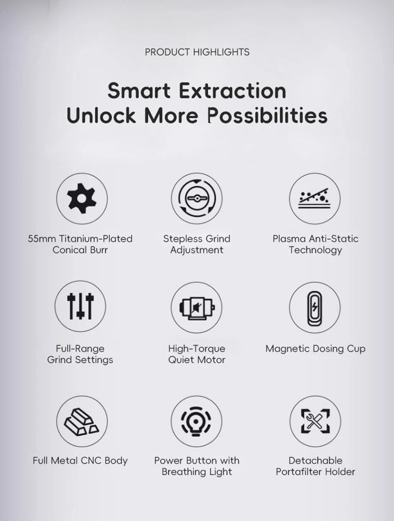 STARSEEKER E55Pro Electric Coffee Grinder 55MM Titanium Cone Burr Stepless Adjustment Espresso Brew Coffee Bean Grinder Black