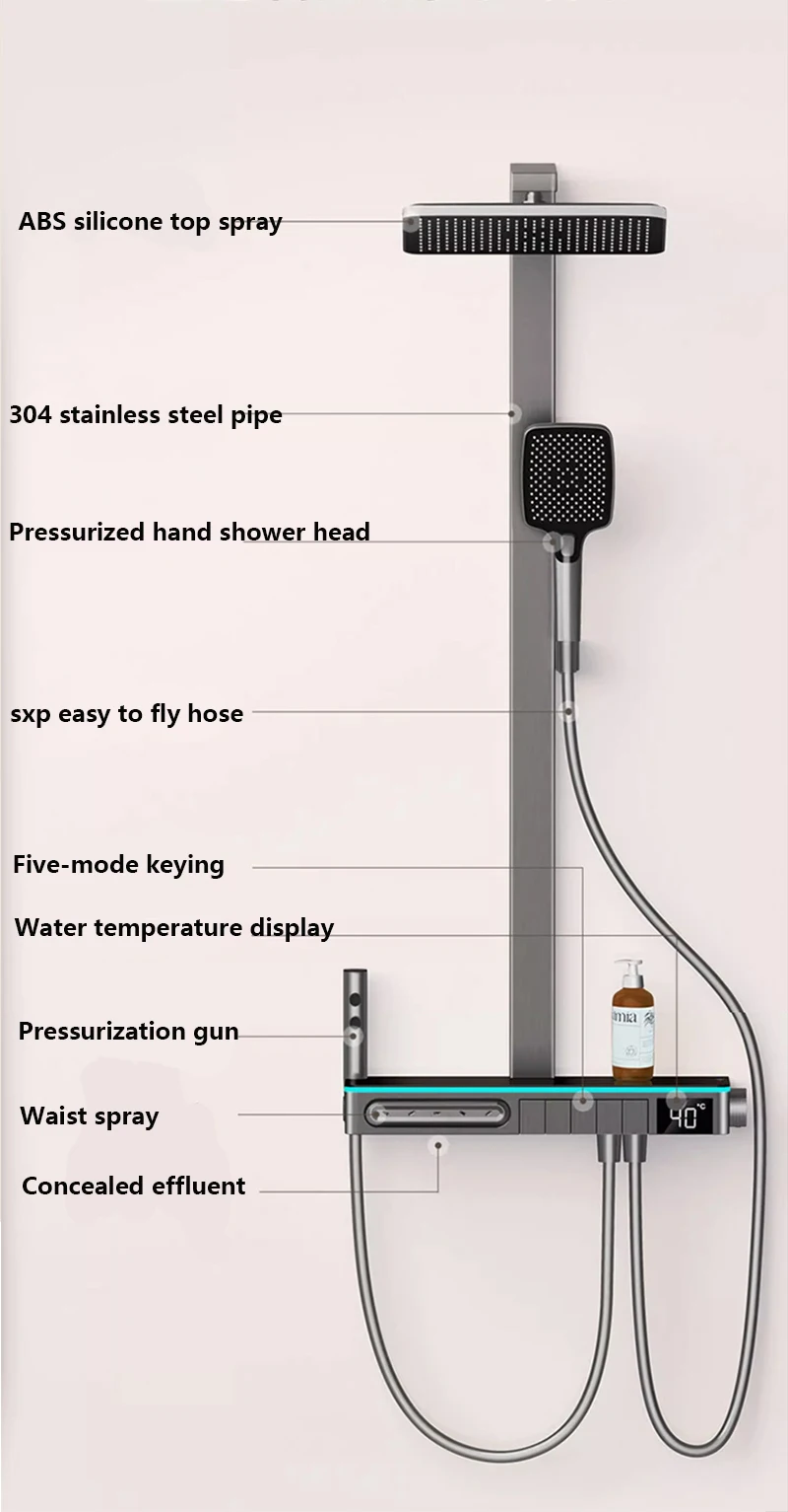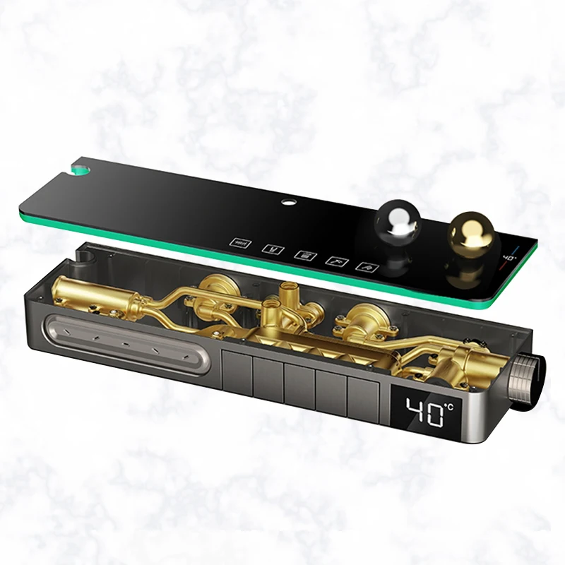 黃銅鋼琴鍵造型外露式淋浴系統,附數位顯示器