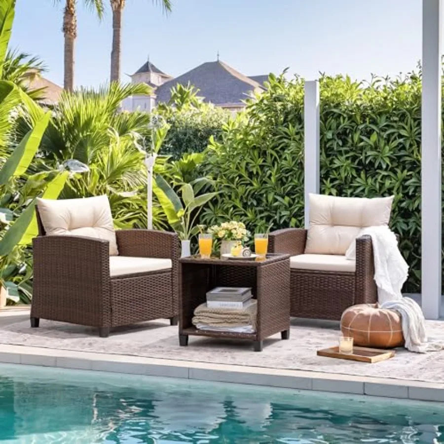 Devoko 三件式戶外家具套裝,PE 藤條編織,含兩張戶外椅和一張桌子,升級版戶外椅和桌子