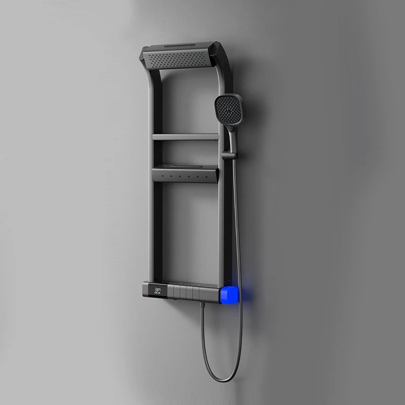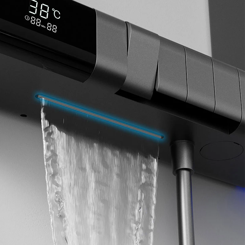 瀑布式淋浴噴頭,帶滑桿的手持花灑,智慧控制面板,螺絲