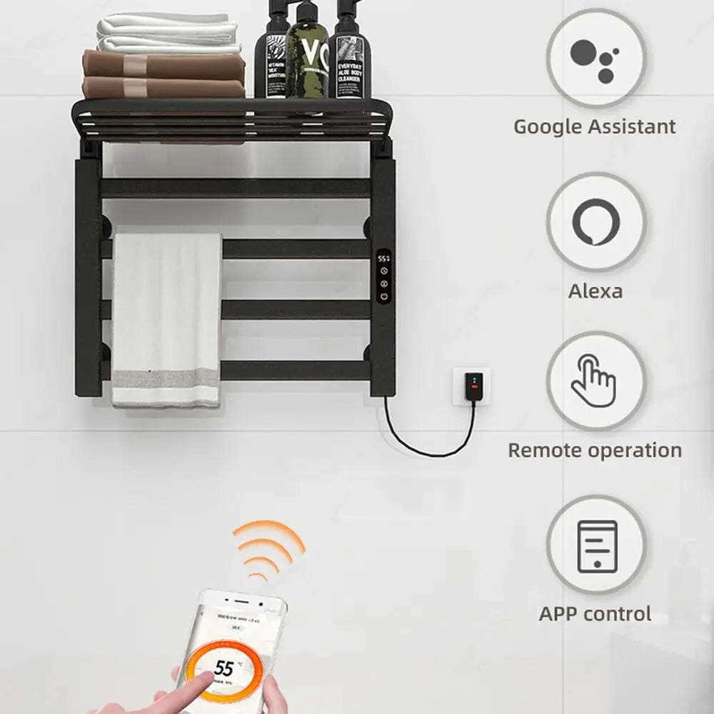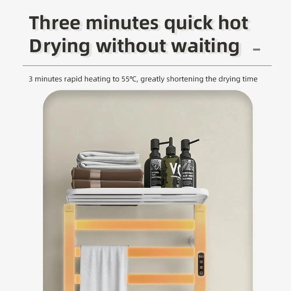 智慧電熱毛架,家用加熱毛巾桿晾乾架,附可折疊收納架,定時、溫度調節,