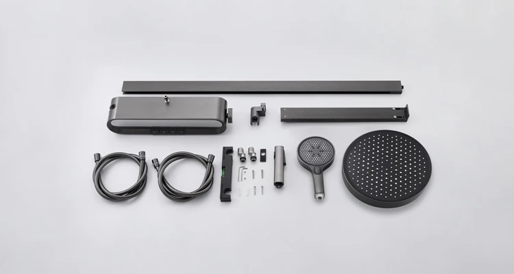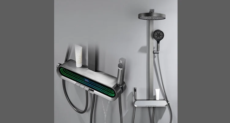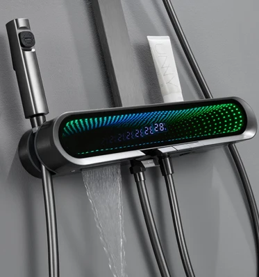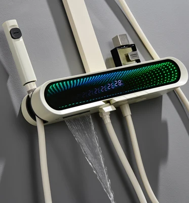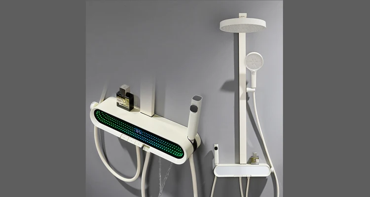 智慧熱銷家用白色淋浴柱瀑布式現代浴室恆溫淋浴噴頭鋼琴鍵數位淋浴套裝