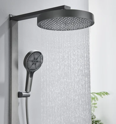 全新淋浴套裝,黃銅混水閥,瀑布式淋浴,頂部花灑,手持花灑,噴槍和底部出水口。