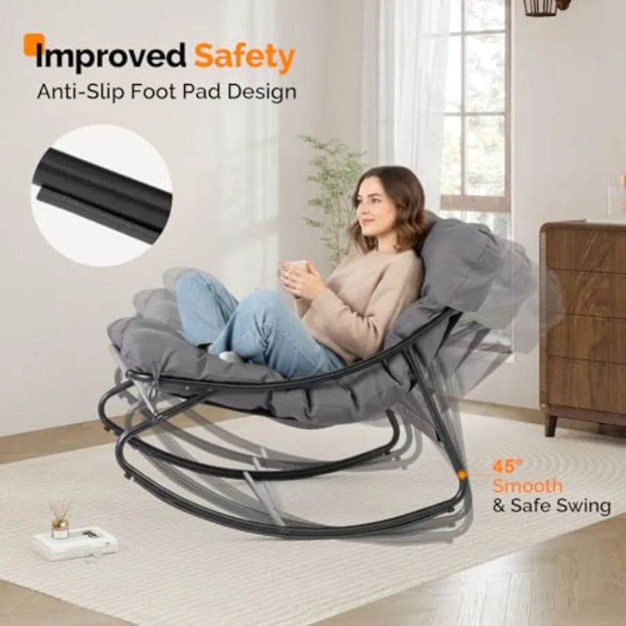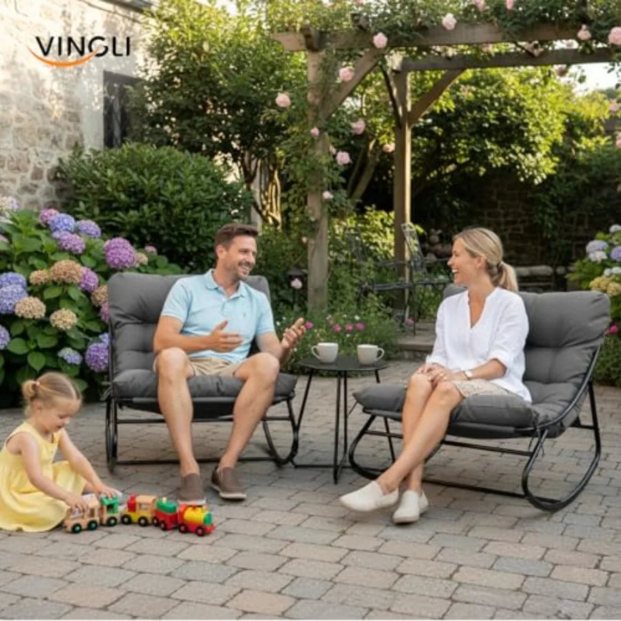 VINGLI 搖椅套裝(2把),附邊桌,承重400磅,附軟墊,室內外通用,灰色