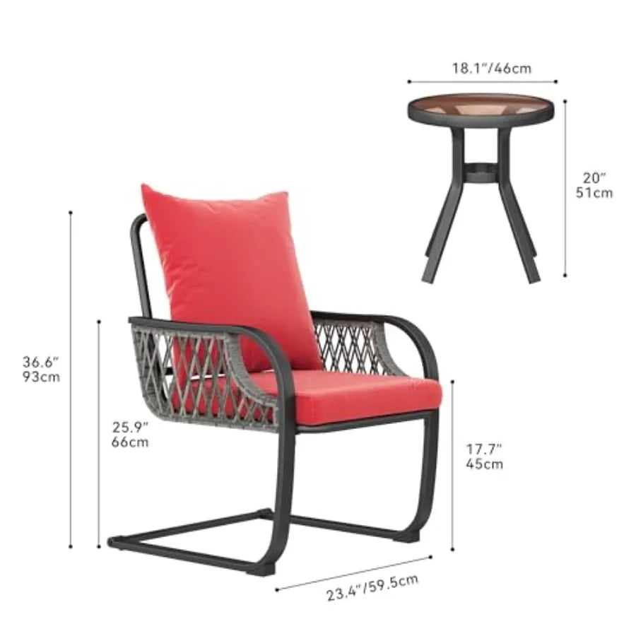 YITAHOME 三件式戶外露台小餐桌椅套裝,全天候藤編休閒椅,柳條家具,C型彈簧動力椅,適用於…